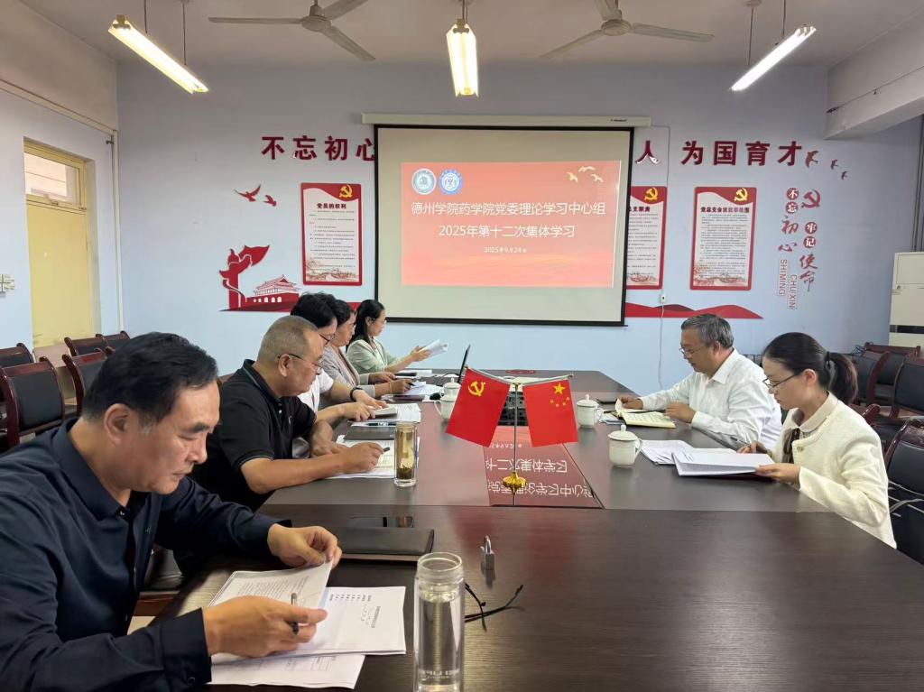 9月24日,药学院在体育楼508会议室进行党委理论学习中心组2025年第十二次集体学习。学校党委委员、纪委书记、省监委驻德州学院监察专员崔新乐,正科级纪检监察员孙琦列席旁听。药学院党委书记冯立顺主持,学院党委理论学习中心组全体成员参加。