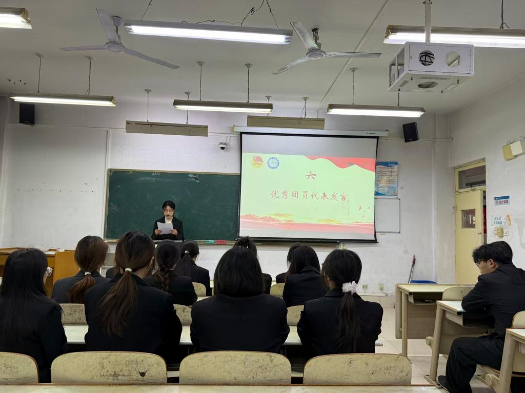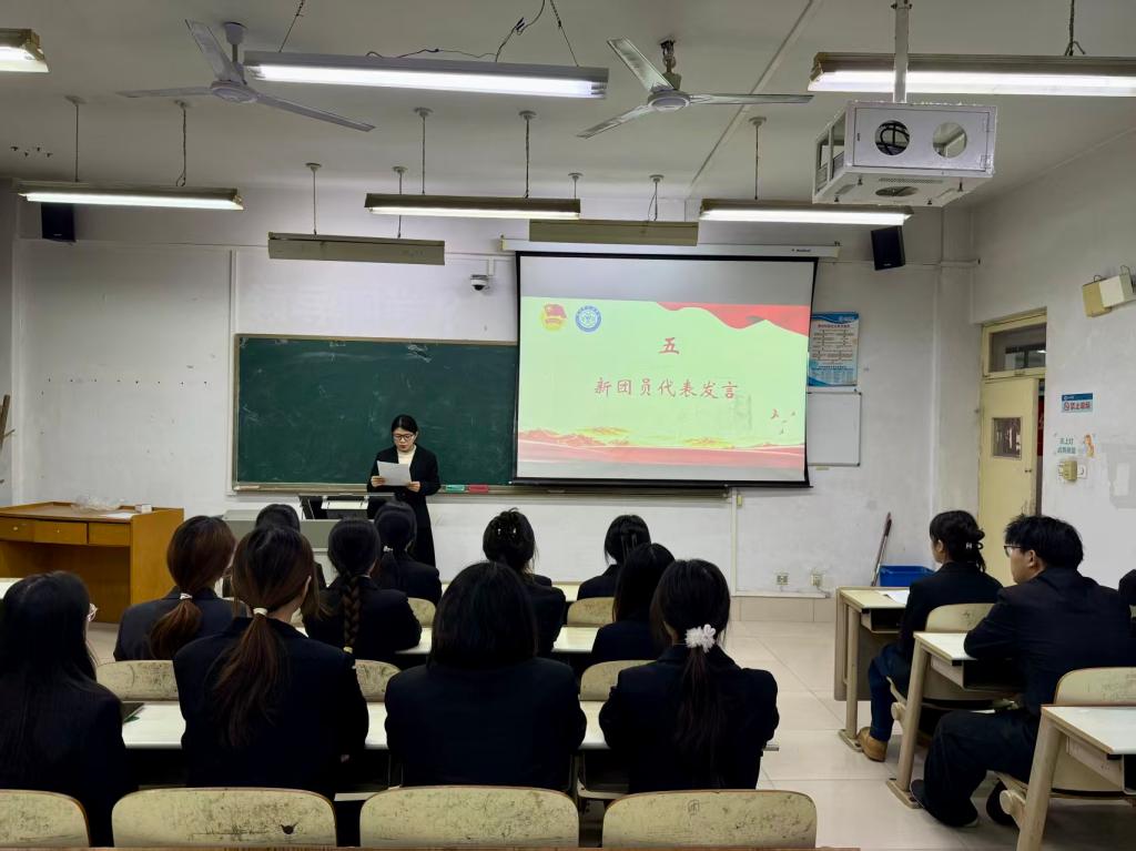 仪式在庄严的中华人民共和国国歌声中拉开帷幕。学院团委书记宣读新发展团员名单,并为新团员佩戴团徽。在领誓人带领下,全体新团员面向团旗庄严宣誓。新团员代表发言时难掩激动之情,她表示将以入团为新起点,以团员标准严格要求自己,恪守团员使命,勤学善思、笃行实干,以青春之我践行初心。优秀团员代表向新团员们送上诚挚祝贺,分享了自身成长经历,鼓励新团员奋勇争先,以实际行动践行团员承诺,努力成长为有理想、敢担当、能吃苦、肯奋斗的新时代好青年。学院团委书记向新团员提出殷切期望,希望大家坚定理想信念,勤奋学习、锤炼品格,在青春的赛道上奋力奔跑,为团组织增光添彩。入团仪式在激昂的中国共产主义青年团团歌声中圆满落幕。