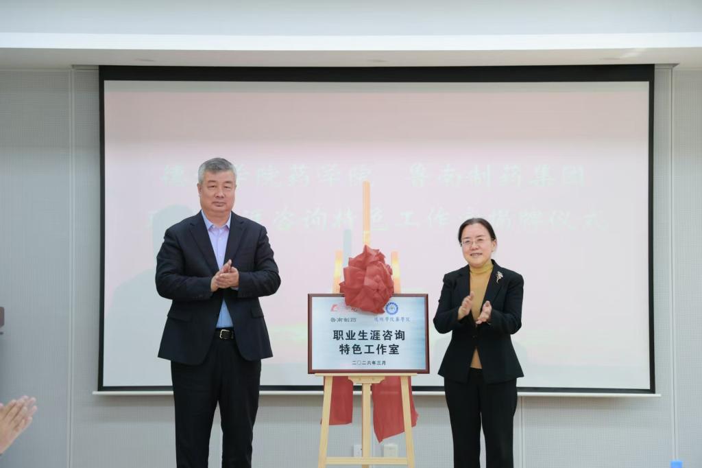 徐静表示,德州学院将以未来药学院产业学院为依托,以“精英班”为纽带,持续深化与鲁南制药的合作,推动教育教学与企业实践深度融合。双方一致同意,进一步拓宽合作领域,在科研创新、成果转化等方面开展深度合作,实现校企优势互补、资源共享、共赢发展。双方还举行德州学院—鲁南制药“精英班”合作协议签约仪式和职业生涯咨询特色工作室揭牌仪式。