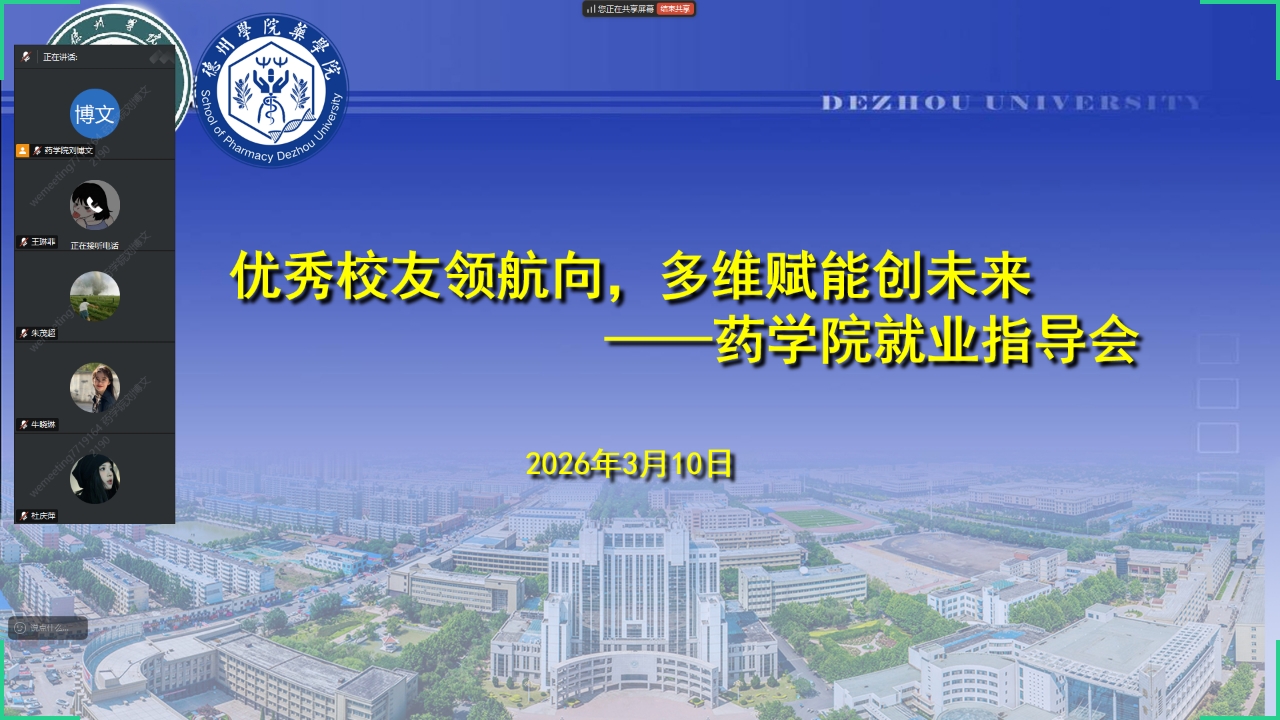 此次线上就业指导会不仅是一次岗位推介,更是一堂生动的职业启蒙课,有效拓宽了毕业生的职业视野,引导大家认识到就业路径的多元性。下一步,药学院将持续链接优秀校友资源,以“身边榜样”的现身说法,多维赋能学子职业生涯规划,切实助力毕业生充分高质量就业。