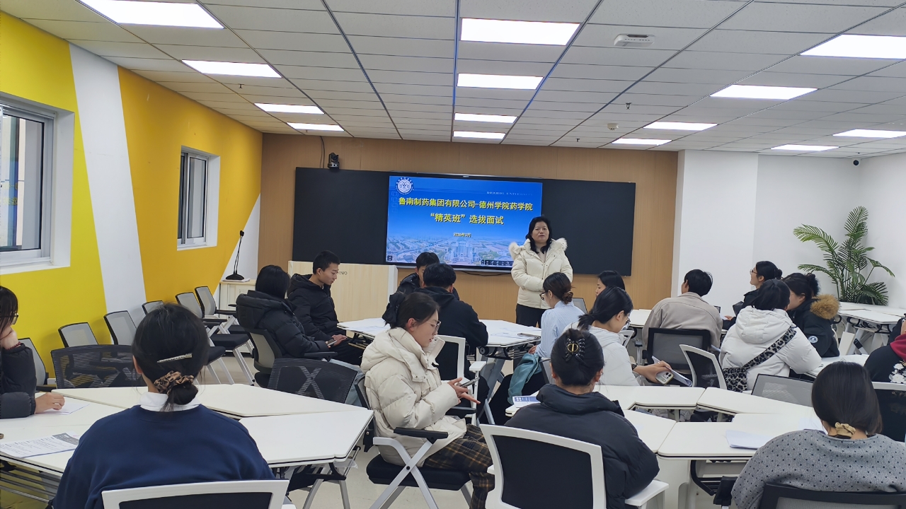 为深化产教融合、精准对接企业人才需求,稳步推进未来药学产业学院建设,助力毕业生高质量实习就业,3月12日,药学院在大学生就业创业赋能中心成功组织鲁南制药集团有限公司—德州学院药学院“精英班”面试活动。药学院有关负责人、专业课教师、辅导员及鲁南制药集团招聘负责人参与活动。