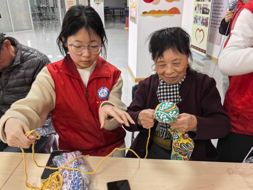 活动现场,志愿者化身专属“手机老师”,采用一对一精准教学模式,手把手拆解线上挂号、门诊缴费、报告单查询等高频操作流程。面对老人的疑问,志愿者耐心讲解、反复演示,逐一攻克操作难点,让老年群体轻松掌握智慧就医技能,切实提升就医便捷度。结合药学专业特色,志愿者带领老人开展艾草养生锤手工制作活动,细致示范填艾、包裹、捆扎等步骤,引导大家协作动手。老人们在温馨氛围中完成手工制作,现场体验养生功效,既锻炼了动手能力,又感受到传统养生的魅力,精神文化生活得到丰富。
